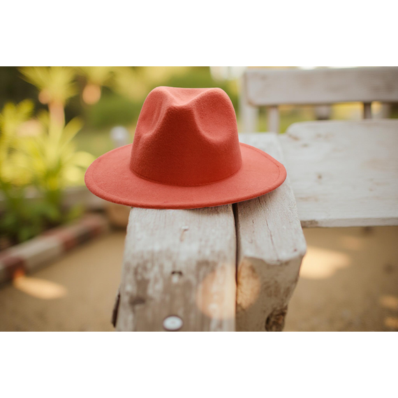 Vibrant orange felt fedora, a statement accessory to add a pop of color and retro charm to your look.